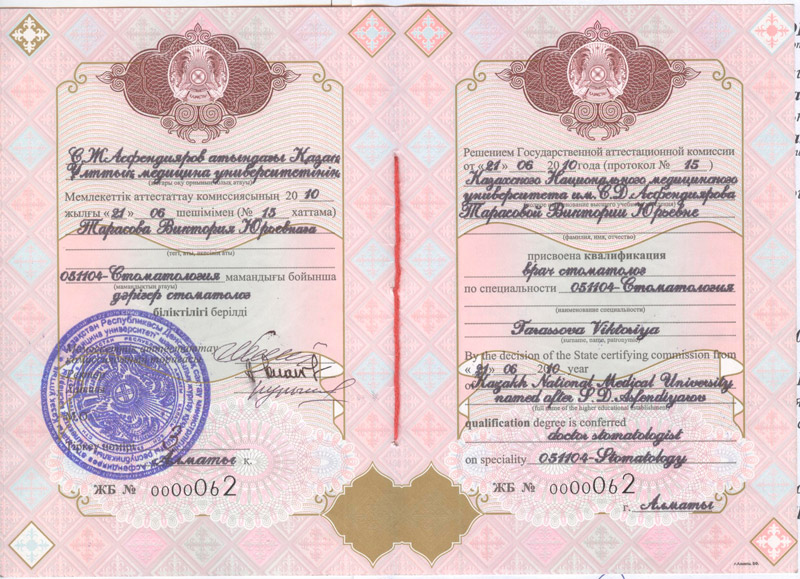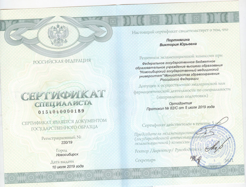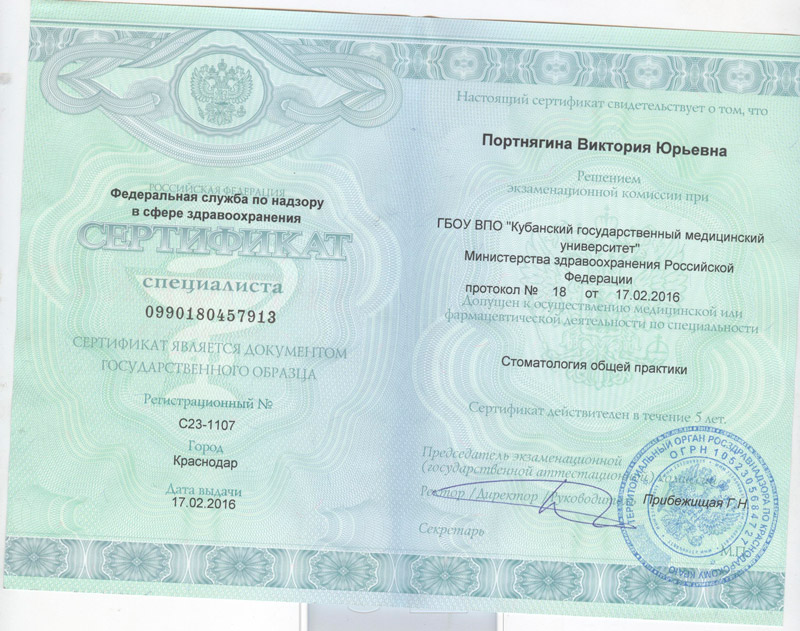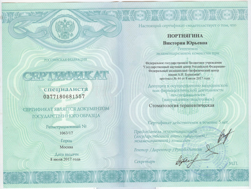 Портнягина Виктория Юрьевна Стоматолог терапевт, ортодонт Сертификаты Сертификат специалиста (Ортодонтия), 2019 год Просмотр Сертификат специалиста (Стоматология общей практики), 2016 год Просмотр Сертификат специалиста (Стоматология терапевтическая), 2017 год Просмотр 2010 Казахский национальный медицинский университет имени С.Д. Асфендиярова Базовое образование Просмотр Просмотр 2011 Казахский национальный медицинский университет имени С.Д. Асфендиярова Интернатура Просмотр Стаж работы 14 лет Покори мир своей улыбкой Запишись сейчас и получи полный спектр стоматологических услуг по самым выгодным ценам. Записаться